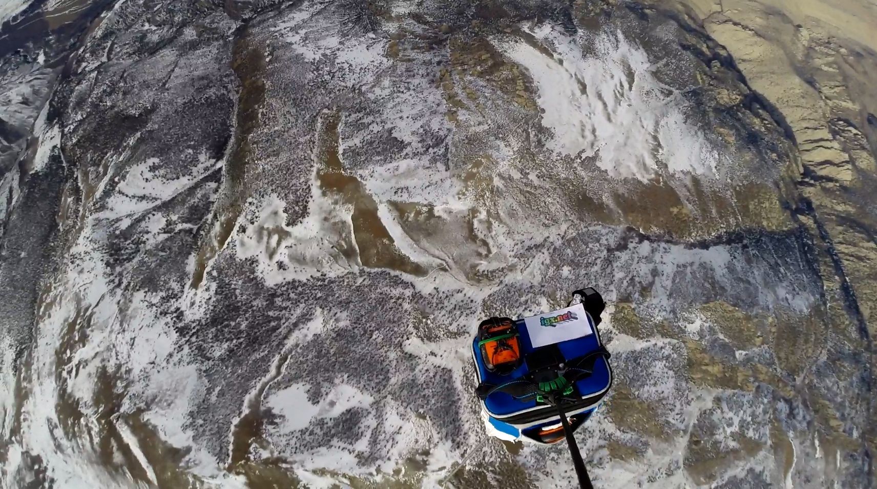 Hey gracias! Los estudiantes desean agradecer a Gary Worrell de la Johns Hopkins University Applied Physics Lab por patrocinar este vuelo. Su generosa donación de $ 500 hizo posible comprar el helio y otros suministros necesarios para conseguir esta misión fuera de la tierra. Nota el logotipo de su sitio web personal, http://igx.net , en esta instantánea de la carga útil de ascender hacia la estratosfera: